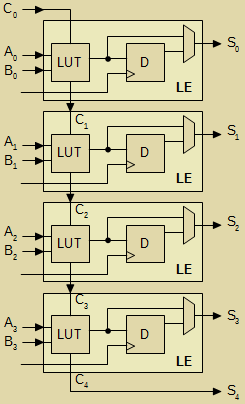 Фактически для переноса требуется ввести дополнительную LUT, как показано на рисунке 4, но для простоты восприятия комбинацию LUT будем рассматривать как один целый модуль.