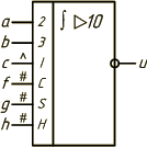 Для обозначения сложной функции элемента допускается применять составное обозначение, составленное из более простых обозначений функций, например, обозначение функции интегрирующего усилителя, составленного из символов интегрирования и усиления, будет иметь вид: